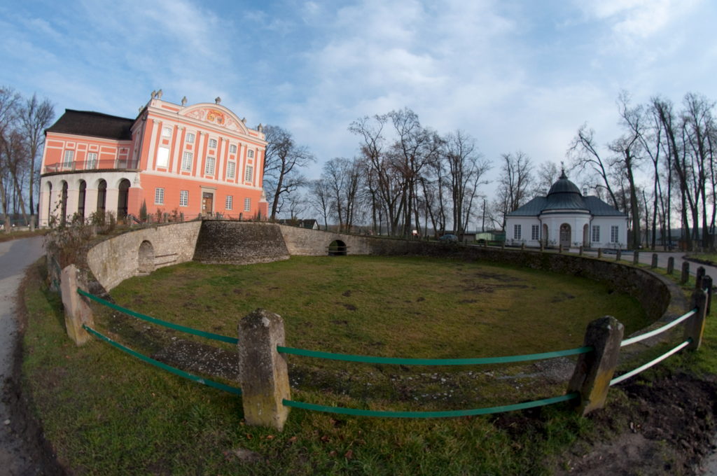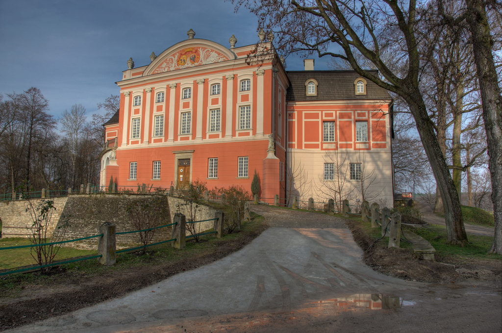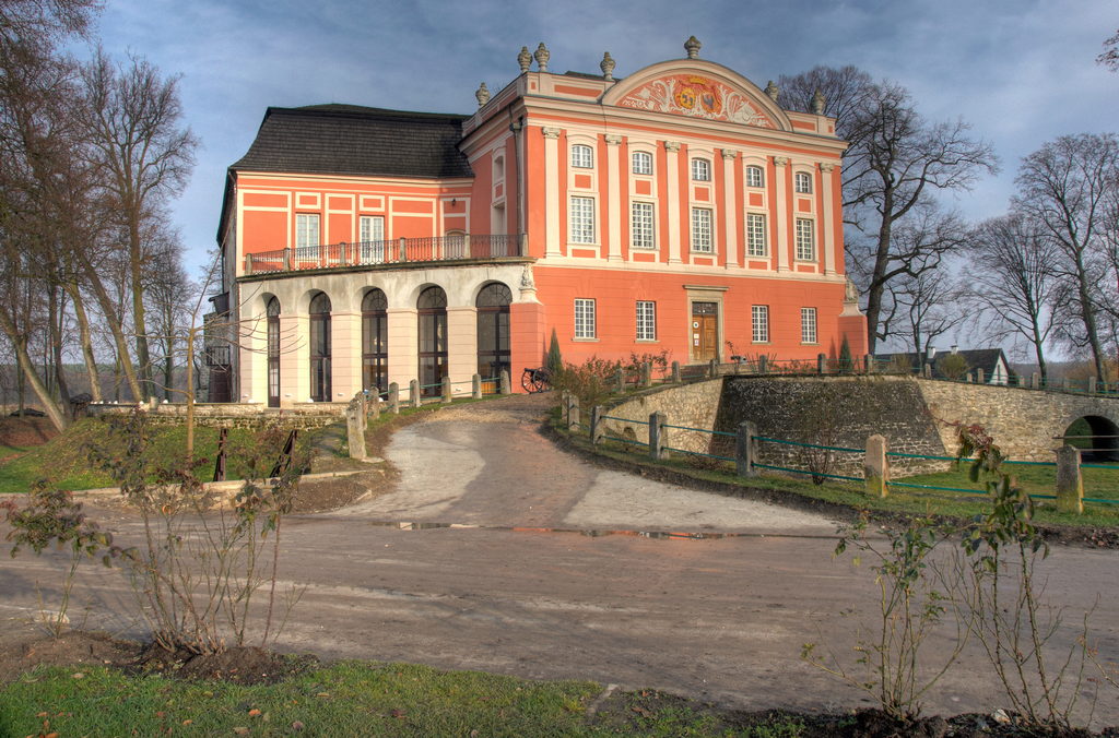 – wczesnoklasycystyczny pałac, dawny zamek z końca XIV wieku, otoczony parkiem, w którym rozpościerają swe korony piękne i rzadko spotykane platany. Przed Pałacem dwa rokokowe pawilony. Obecnie Zespół Pałacowy pełni funkcję ośrodka konferencyjnego z 90 miejscami noclegowymi. Atmosfera minionych epok, jest dopełnieniem tego, co oferuje piękna okolica, którą podziwiać można jeżdżąc powozem lub konno.