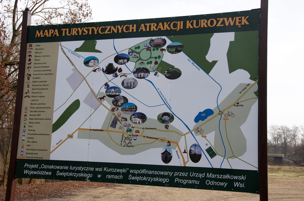Pałac w Kurozwękach to najcenniejszy i najciekawszy zabytek świeckiej architektury w okolicach Staszowa. Liczy on sobie sześć wieków i nosi w sobie wątki różnych stylów. Pierwszy pałac powstał w rozlewiskach Czarnej przed rokiem 1400. W XV wieku został przebudowany i powiększony. Kolejna zmiana nastąpiła około 1500 roku. W XVII wieku otrzymał formę wczesnobarokową. Jednak ostateczny charakter architektoniczny pałac dostał w II połowie XVIII wieku, kiedy to dokonano rokokowej modernizacji całego zespołu. Ta ostatnia przebudowa ustabilizowała wygląd zabytku.
