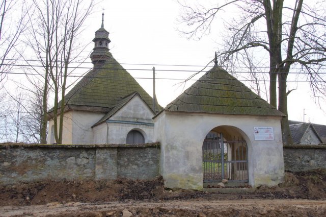 W parku - prostopadle do pałacu - stoją dwa pawilony. Kiedyś były jednakowe, dzisiaj pierwotną "urodę" zachował prawy. Powstał on w II połowie XVII w. - w czasie gdy pałac zamieszkiwali Sołtykowie. Wybrzuszony w środku owalnymi ryzalitami i zachęcający do wejścia otwartymi arkadami - nakryty został oryginalnym dachem mansardowym, zakończonym stożkiem. We wnętrzu sale są okrągłe lub owalne z ryzalitami.