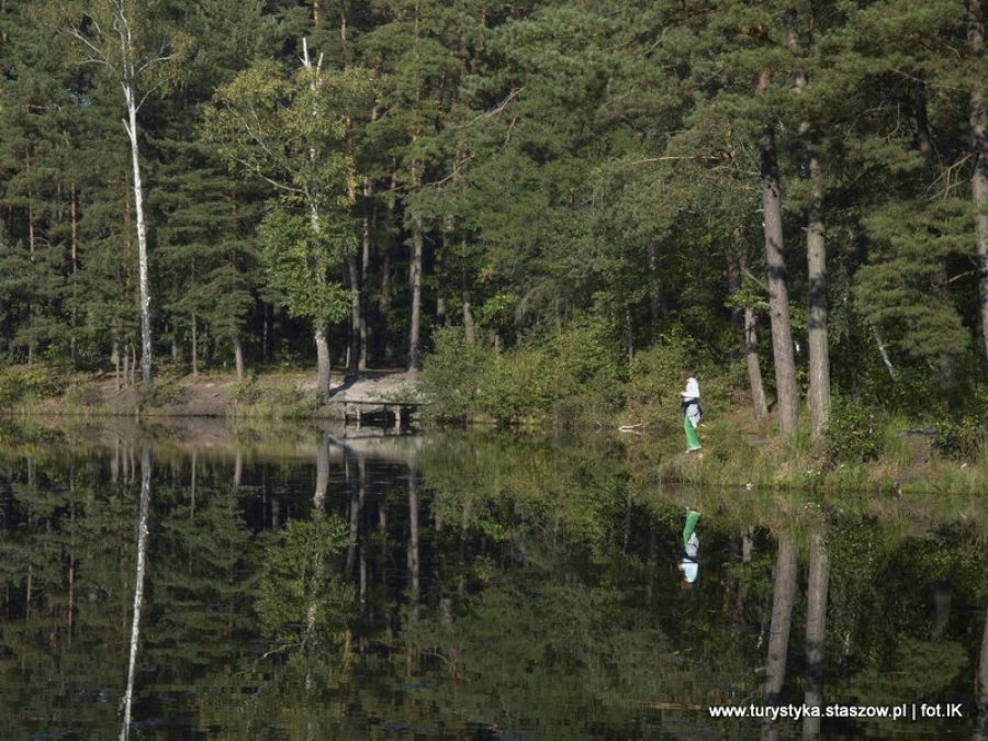 Staw Jasny położony jest w odległości ok. 5,5 km od Staszowa. Zbiornik ma ok. 120 metrów długości i jako jedno z nielicznych jezior śródleśnych ma piaszczyste dno. Jest to powodem dla którego jest, miejscem poddanym dużej presji. W sezonie letnim nad stawem Jasny funkcjonuje dzikie kąpielisko. W pobliżu znajduje się jeszcze 7 typowo leśnych, torfowych stawów, wśród których należy wyróżnić: „Ciemny” i „Szyje”.